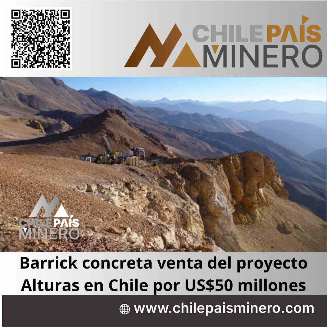 - La compañía minera Barrick Mining Corporation anunció desde Toronto la venta del proyecto aurífero Alturas, ubicado en Chile, a la firma Boroo Pte. Ltd. de Singapur, en una operación valorada en US$50 millones.