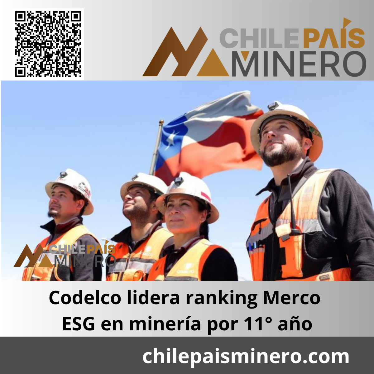 - Codelco lidera ranking Merco ESG (criterios ambientales, sociales y de gobernanza) en minería y se ubica entre las 20 empresas más responsables de Chile.