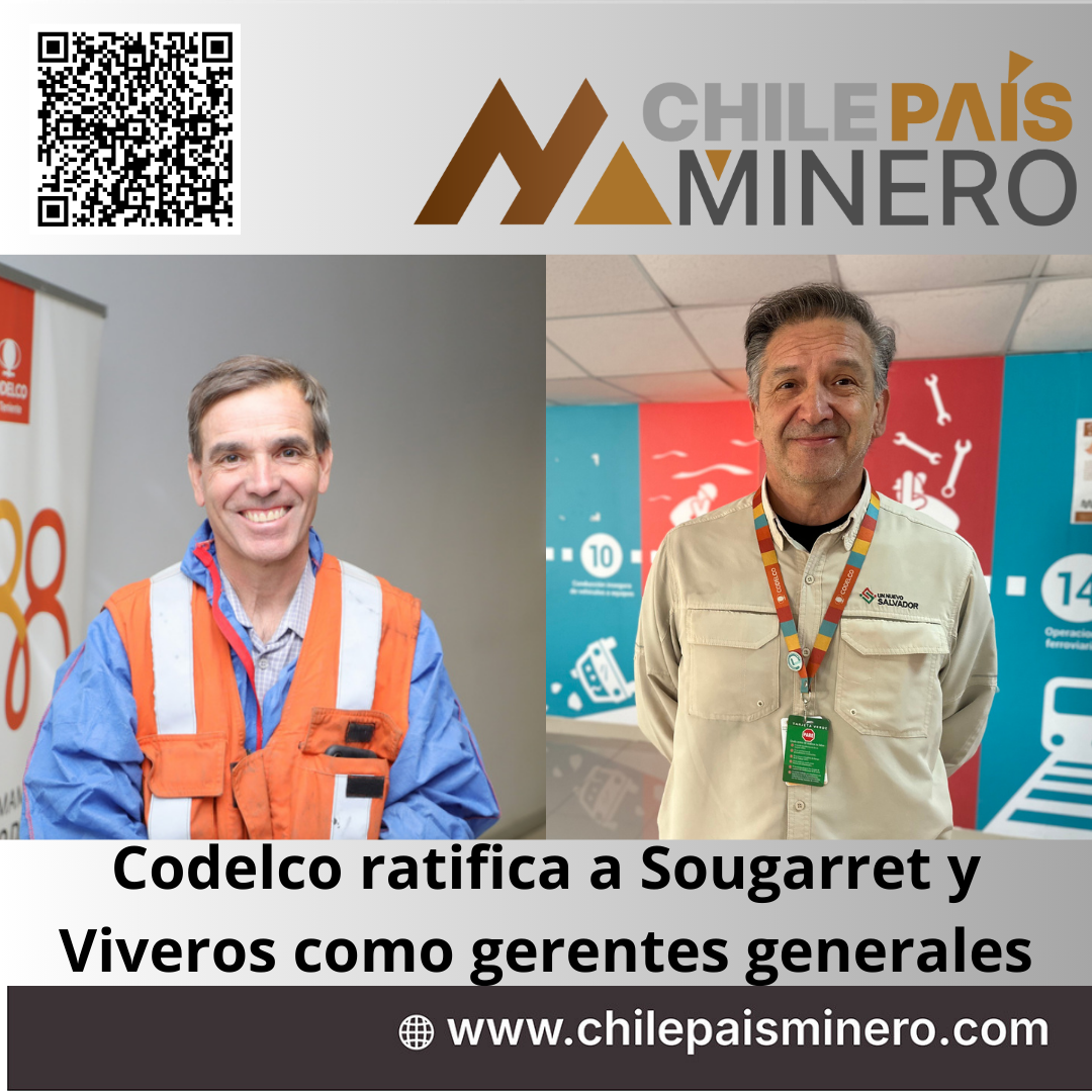 - Codelco confirmó a Claudio Sougarret en El Teniente y a Patricio Viveros en Salvador, ambos con amplia trayectoria en la compañía.