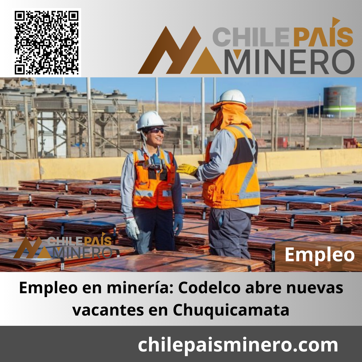 Codelco sumó nuevas oportunidades de empleo en la División Chuquicamata, en la Región de Antofagasta, con cargos orientados a la operación minera, la gestión de personas y el control de procesos. Las vacantes refuerzan la demanda por talento especializado en una de las divisiones más relevantes de la minería chilena, en un contexto donde la industria mantiene un rol clave para la actividad económica y la empleabilidad del norte del país.