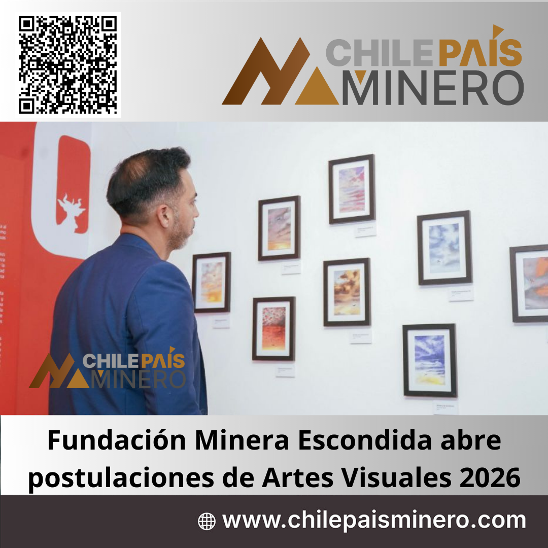 Chile País Minero informa que ya se encuentra abierta la Convocatoria de Artes Visuales 2026, impulsada por Fundación Minera Escondida en colaboración con Dibujona, orientada a fortalecer la identidad territorial y el vínculo entre el arte regional y las comunidades de la Región de Antofagasta.