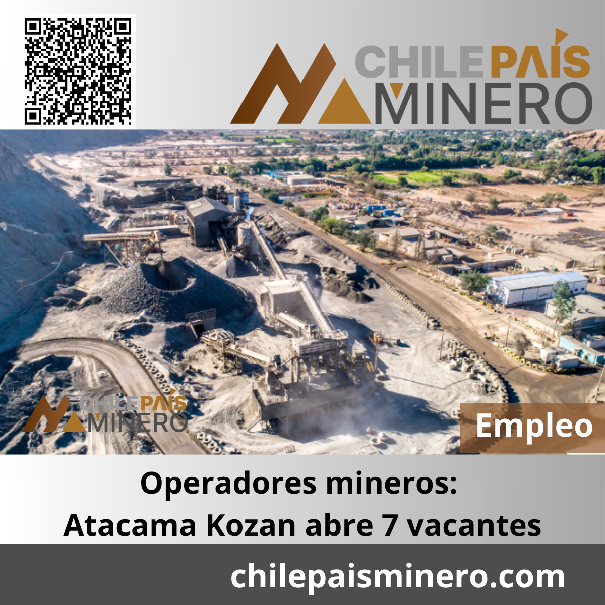 El mercado laboral minero en el norte del país continúa mostrando movimiento. S.C.M. Atacama Kozan abrió 7 oportunidades de empleo minero en Copiapó y Tierra Amarilla, orientadas a la operación de equipos especializados en desarrollo subterráneo y movimiento de material.
